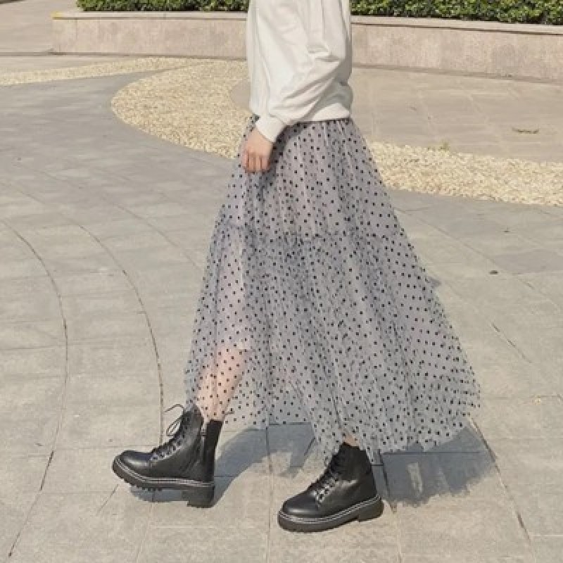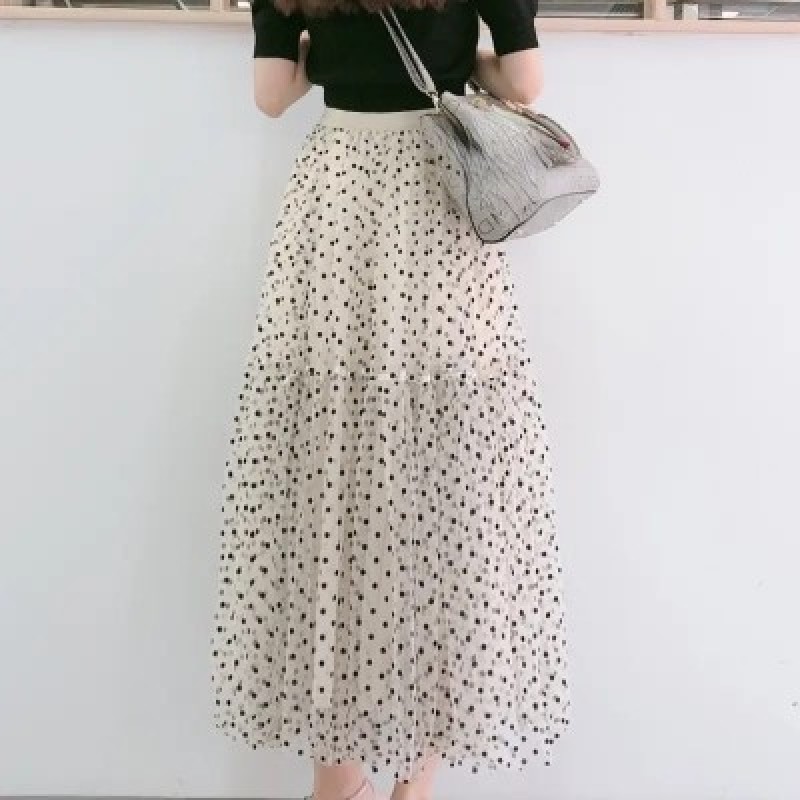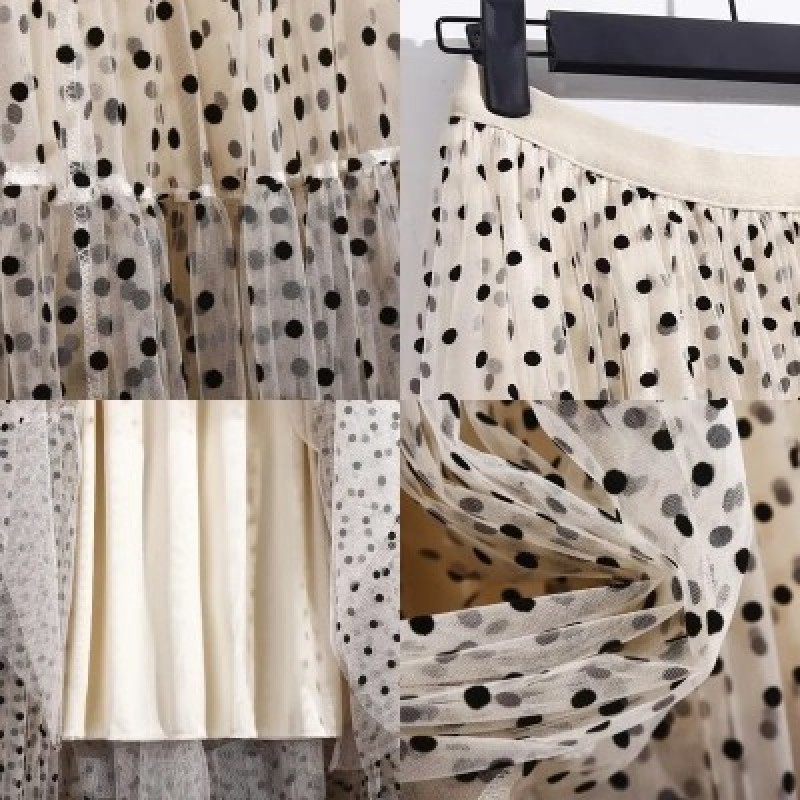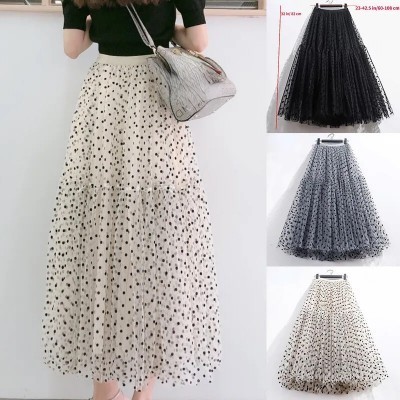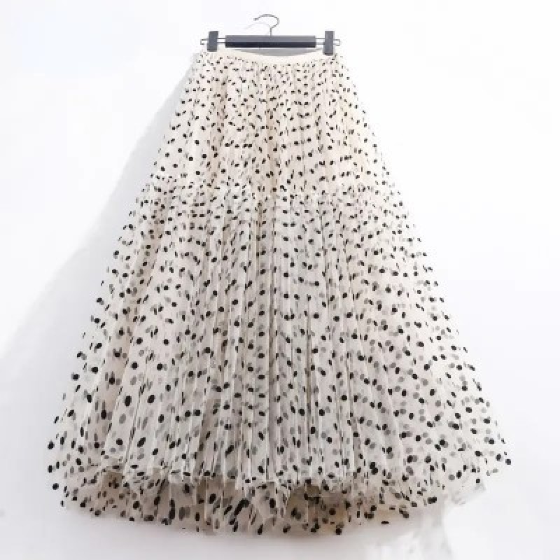 * Item: Women Layered A-Line Maxi Hem Mesh Midi Skirts New Polka Dot Pleated Tulle Skirt