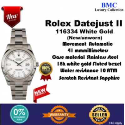 Часы Rolex Datejust II из нержавеющей стали 41 мм 116334 с белым циферблатом, НОВЫЕ