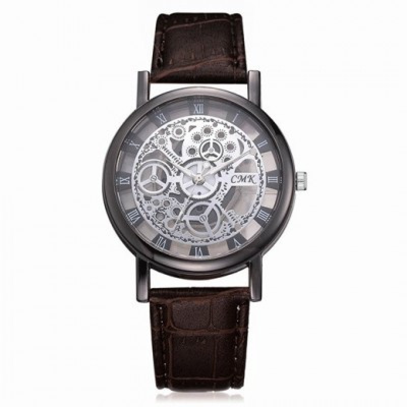 Мужские повседневные часы - J001 Мужские кварцевые наручные часы с гравировкой и полым кожаным ремеш