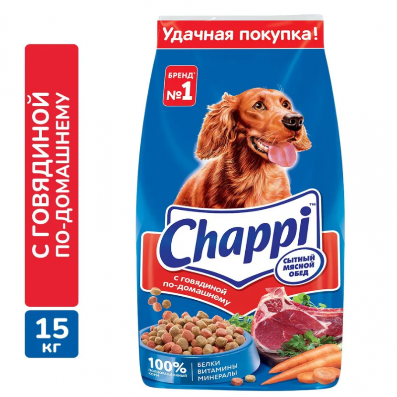 Сухой корм для собак Chappi «Сытный мясной обед. С говядиной по-домашнему» 15кг