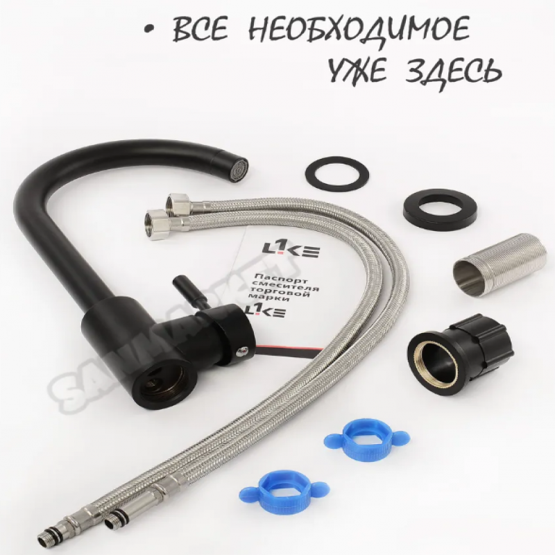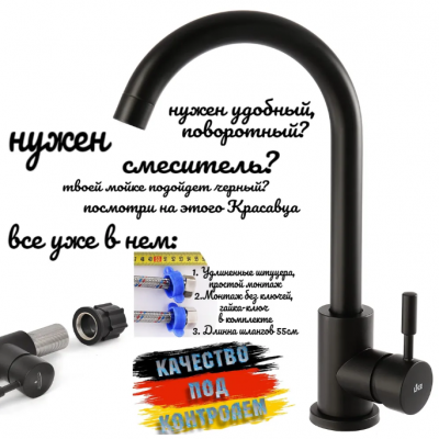 Смеситель для кухни, мойки из нержавеющей стали, Черный с подводками 120см ₽880.00 |